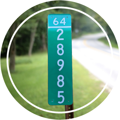 The County Road number is horizontal and your house number is vertical. This 6 x 18″ sign should be mounted on an 8′ T-post using two u-bolts (from the hardware store) at the end of your driveway.